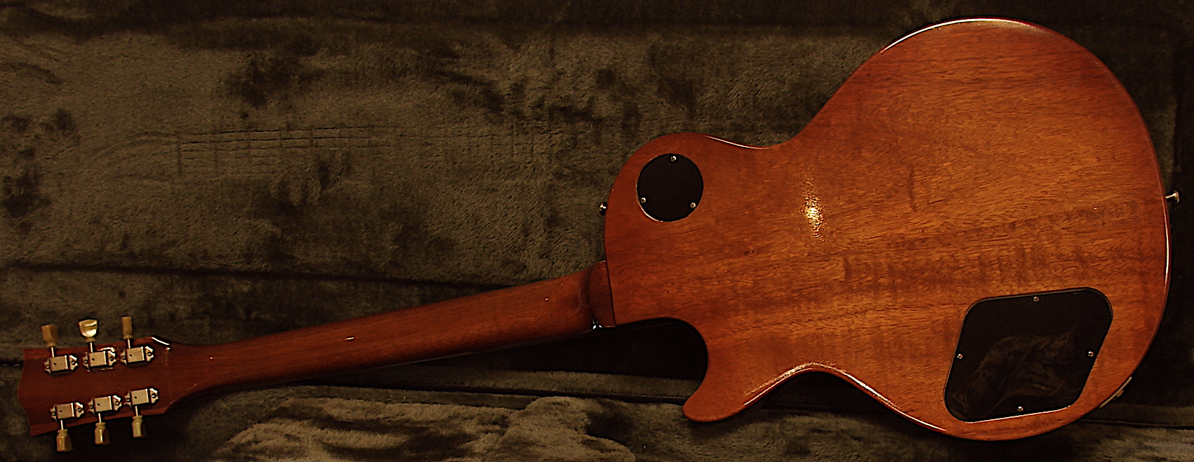 Color: Aged Cherry Red Look: Aged Guard: 3 ply Aged White Finish: Ultra Thin Nitro Finish & Nitro Grainfiller Body: Mahagony, Neckshape: Medium, Long Tenon, Neck thickness: 1 Fret = 22,5 mm / 12 Fret = 24 mm Neckwood: Mahagony ,Palisander Fingerboard Radius: 12 Zoll Radius Frets: Sintoms 2,8 EH Jumbo Frets Nut: Bone Bridge: Aged Gibson ABR 1 with Brass bridges and Steel Posts & Thumbwheels Tailpiece: Aged Alu with extra Long Steel Studs & Anchors Tuner: Aged Gotoh Tuner Pots & Switch: Matched Set CTS TVT Custom Pots , Switchcraft 3 Way Switch, Switchcraft Output Jack Electronic: 50's Wiring Tone: Mustard Cabs Pickups: Amber 59 PAFs, Custom wound for Real Guitars,Aged by Real Guitars Nickel Covers. Alnico V, plain enamel wiring.Bridge Output: 8 Kohm,Neck Output: 7,55 Kohm Weight: 3,05 KG In Stock ! included Case ! |
