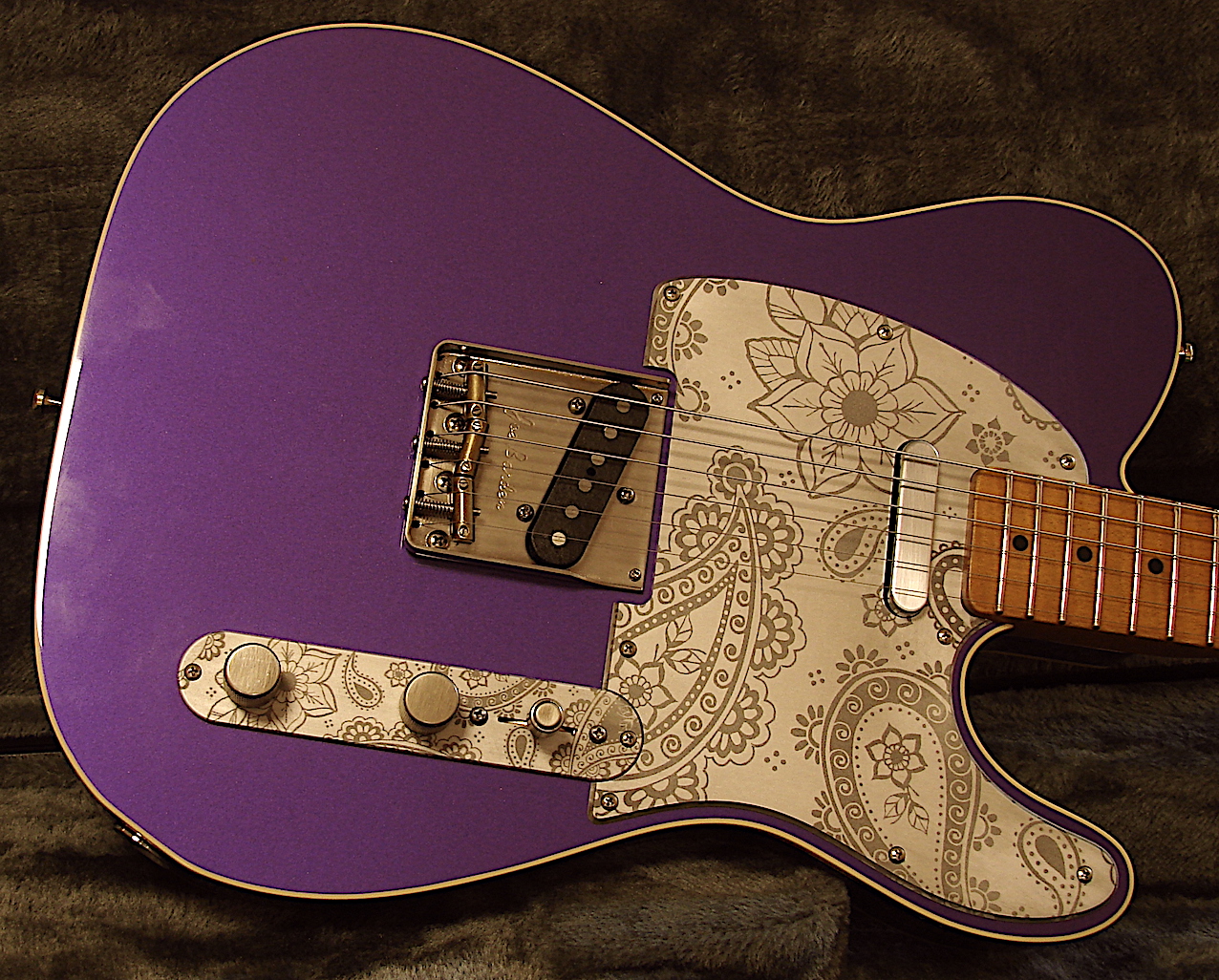 Color: Purple Rain Look: Very Light Aged with fine crackles Finish: Ultra Thin Nitro Finish Body: Alder Neckshape: Medium, C Shape Neckwide: Nut = 42,7 mm / 12 Fret = 51,6mm Neck thickness: 1 Fret = 22,5 mm / 12 Fret = 24 mm Neckwood: 5 A Flamed Maple Fingerboard: 5 A Flamed Maple Trussrod: 2 Way - Handmade for Real Guitars Radius: 9,5 - 12 Zoll Compound Frets: Sintoms 2,8 EH Jumbo Baseprice: 2795,- EUR Bridge: Joe Barden with compensated brass bridges Tuner: Aged Gotoh Kluson Style Tuner Pots & Switch: CTS TVT Taper Pots , Oak 3 Way Switch Electronic: Passiv Real Guitars Volume Controller, No loss of Treble and Bass over the complete Range, Single Coil Switch for Hunbucker with Push/Push Tone: Mustard Capacitor Pickguard: Alu engraved Pickups: Amber 50's T Set ! Custom Wound für Real Guitars ! Service: Included 24 Hours artificial transient oscillation ! ( Künstliches Einschwingen ) Weight: 3,12 KG Baseprice: 2695,- EUR Double Binding: + 250- EUR Hollow Option: + 150,- EUR 5 A Flamed Maple Neck: + 150,- EUR Alu engraved Pickguard & Control Plate: + 150,- EUR In Stock ! |